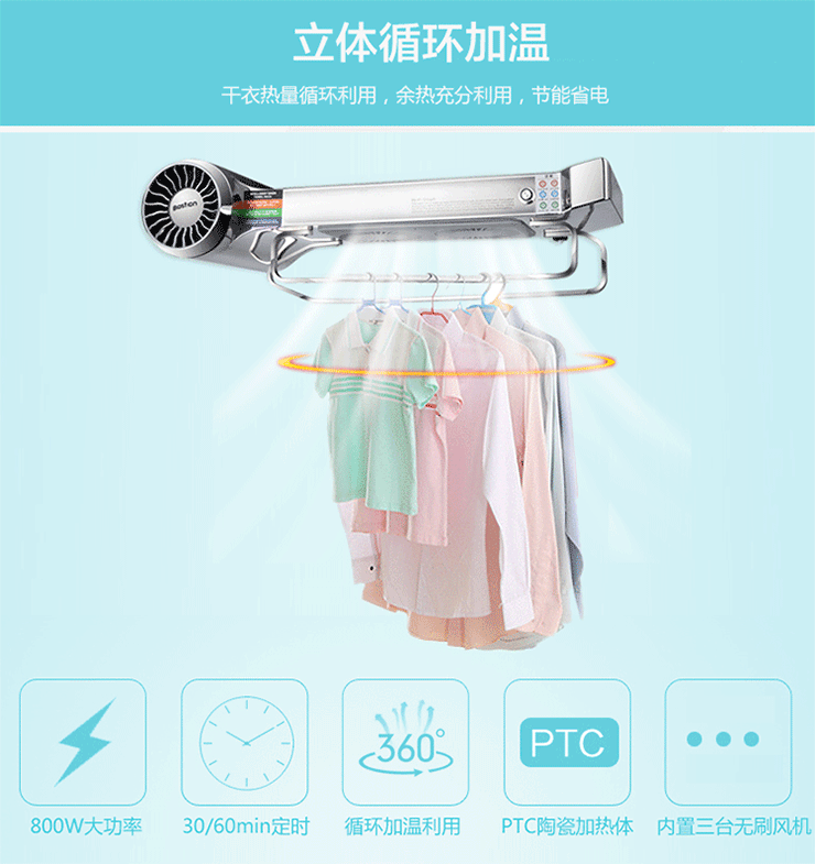 The smart clothes dryer fill the blank of the intelligence , with drying, sterilization, disinfection, deodorization function , apply as towel rack, dry skin , hair dryer , hand dryer , bathroom heating , ventilation and lighting. Smart clothes dryer can automatic timing sipped , drying clothes quick and in intelligent control .